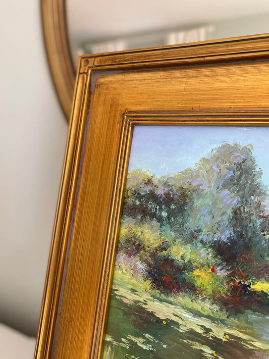 Original Signed Oil on Panel Painting of Lily Pad Pond