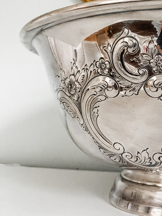 Huge Hand Chased Repousse Centerpiece Bowl