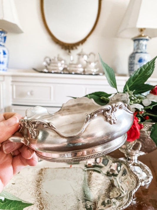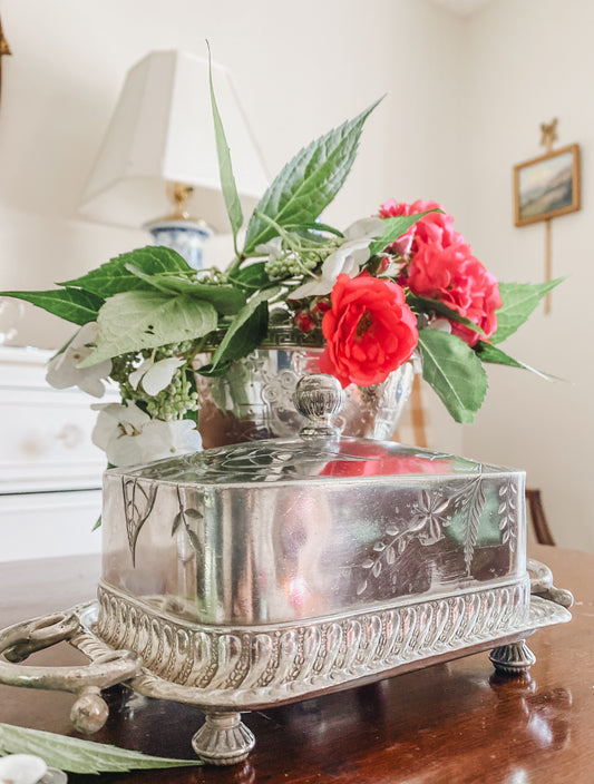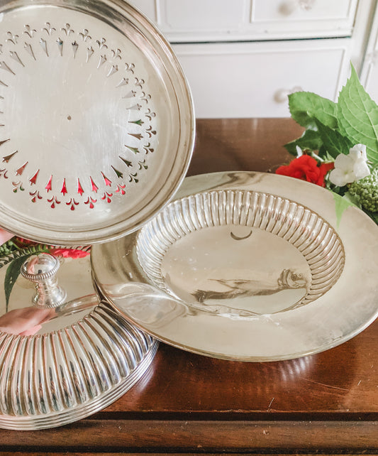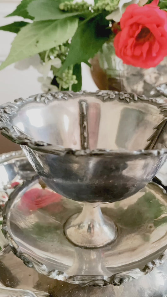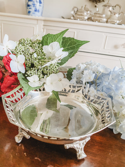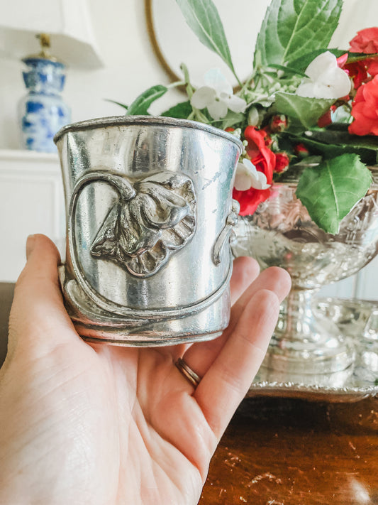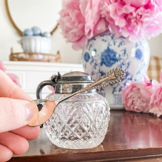 Antique Reticulated Silver Jar With Cobalt Blue Liner
