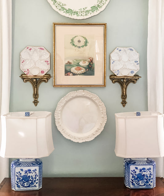 Black and Gold Antique Oyster Plate with Pink Toned Wells