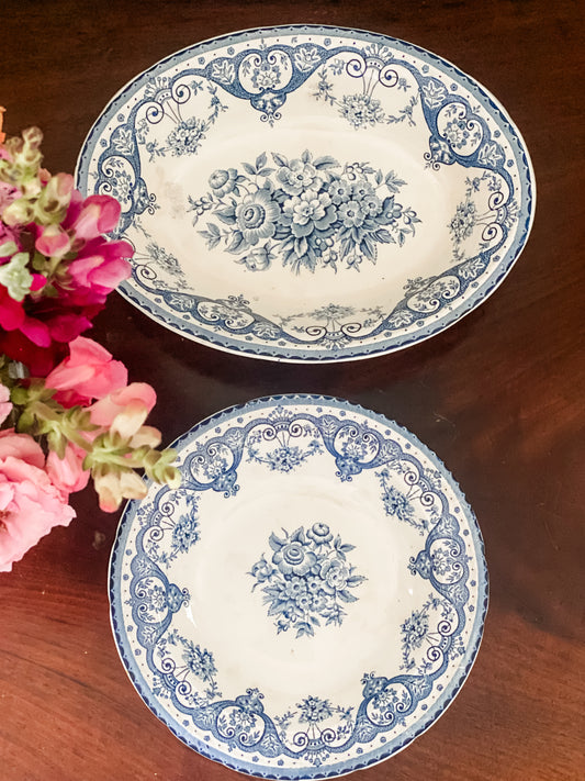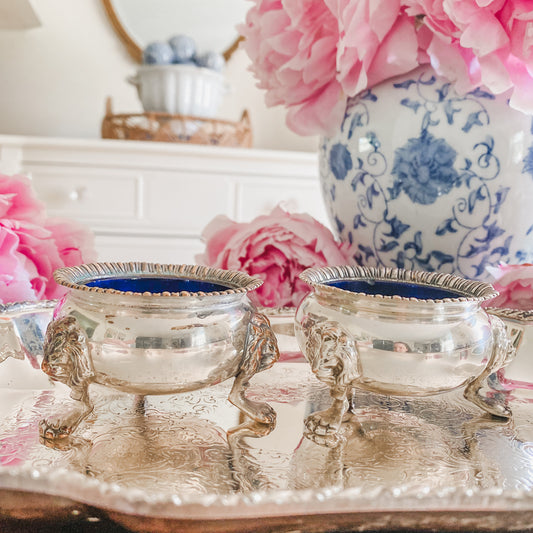 Set of 2 English Antique Salts with Blue Cobalt Liners