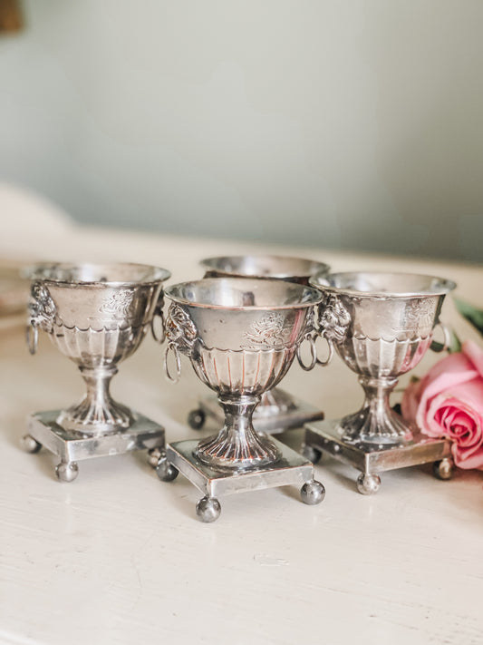 Set of 4 Antique Lion's Head Salt Cellars from the 1800's