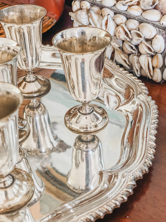 Set of 6 Elegant Liqueur Glasses and Tray