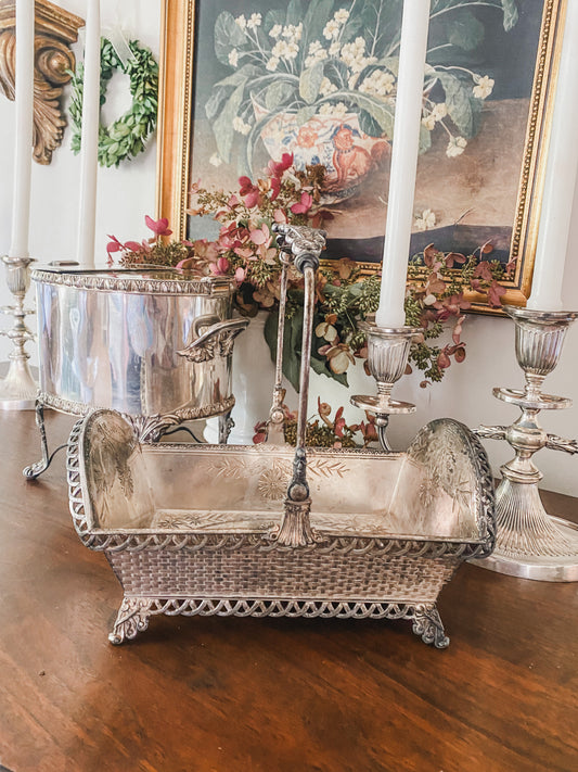 Fabulous Detailed Antique Quadroupleplate Buck Basket