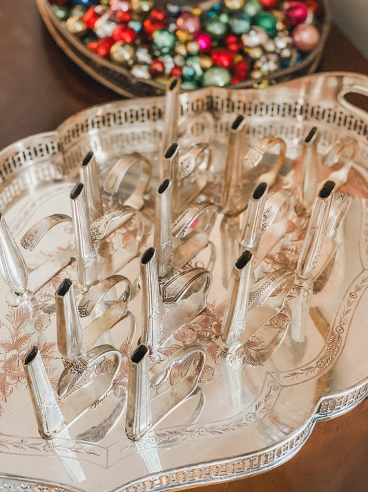 Set of 15 Vintage Napkin Rings with Miniature Vases – A Tabletop Treasure