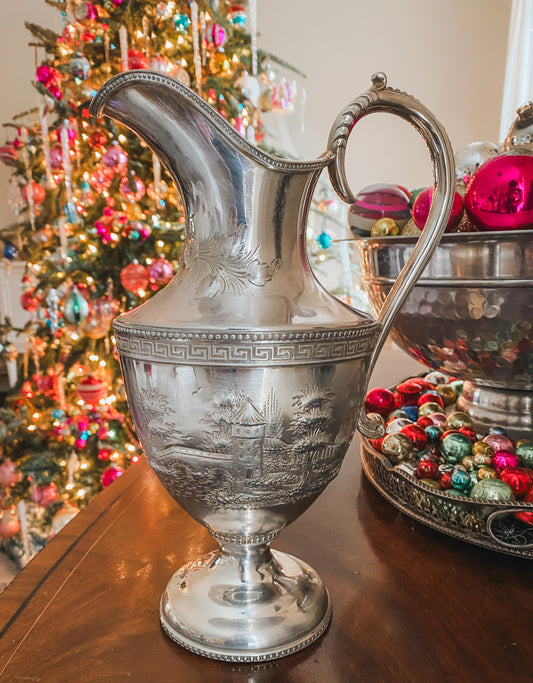 Stunning Antique Repousse Pitcher with Bucolic Details