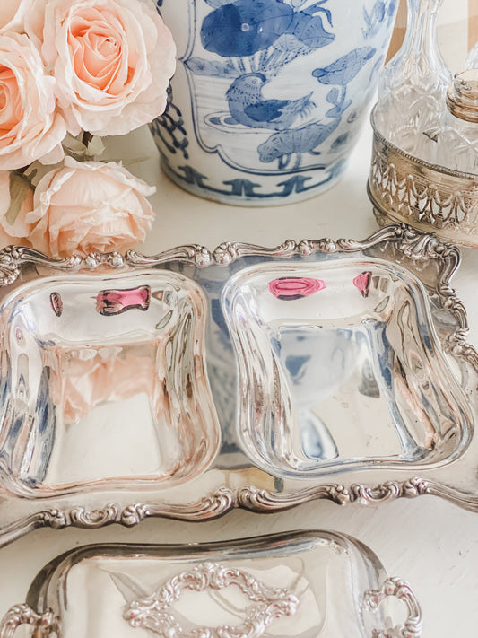 Large Antique Quadroupleplate Crumb Catcher and Brush
