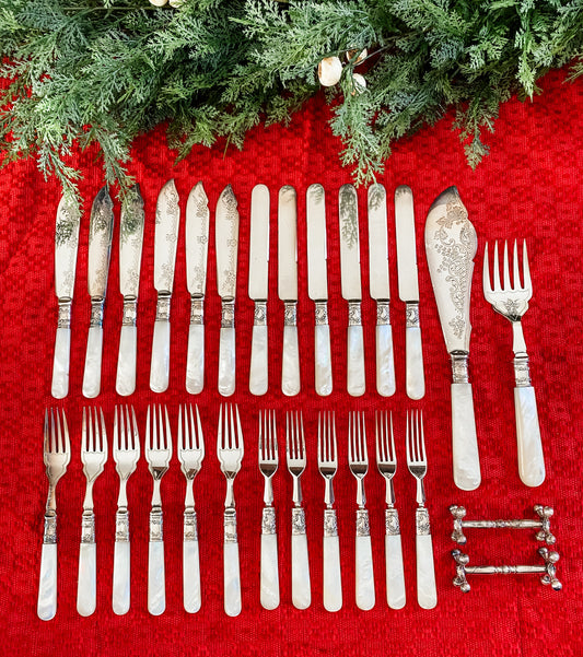 Very Rare Antique English Mother of Pearl Cutlery Set