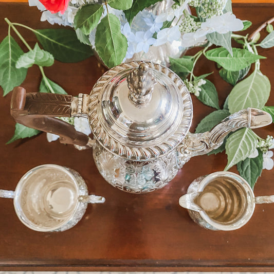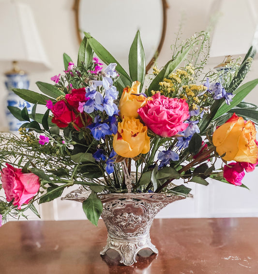 Excellent Antique Quadroupleplate Hummingbird Basket