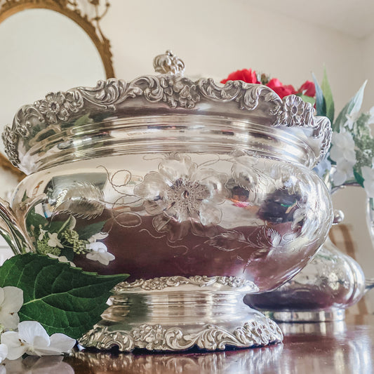 Ornate Antique Repousse Quadroupleplate Tureen By Poole