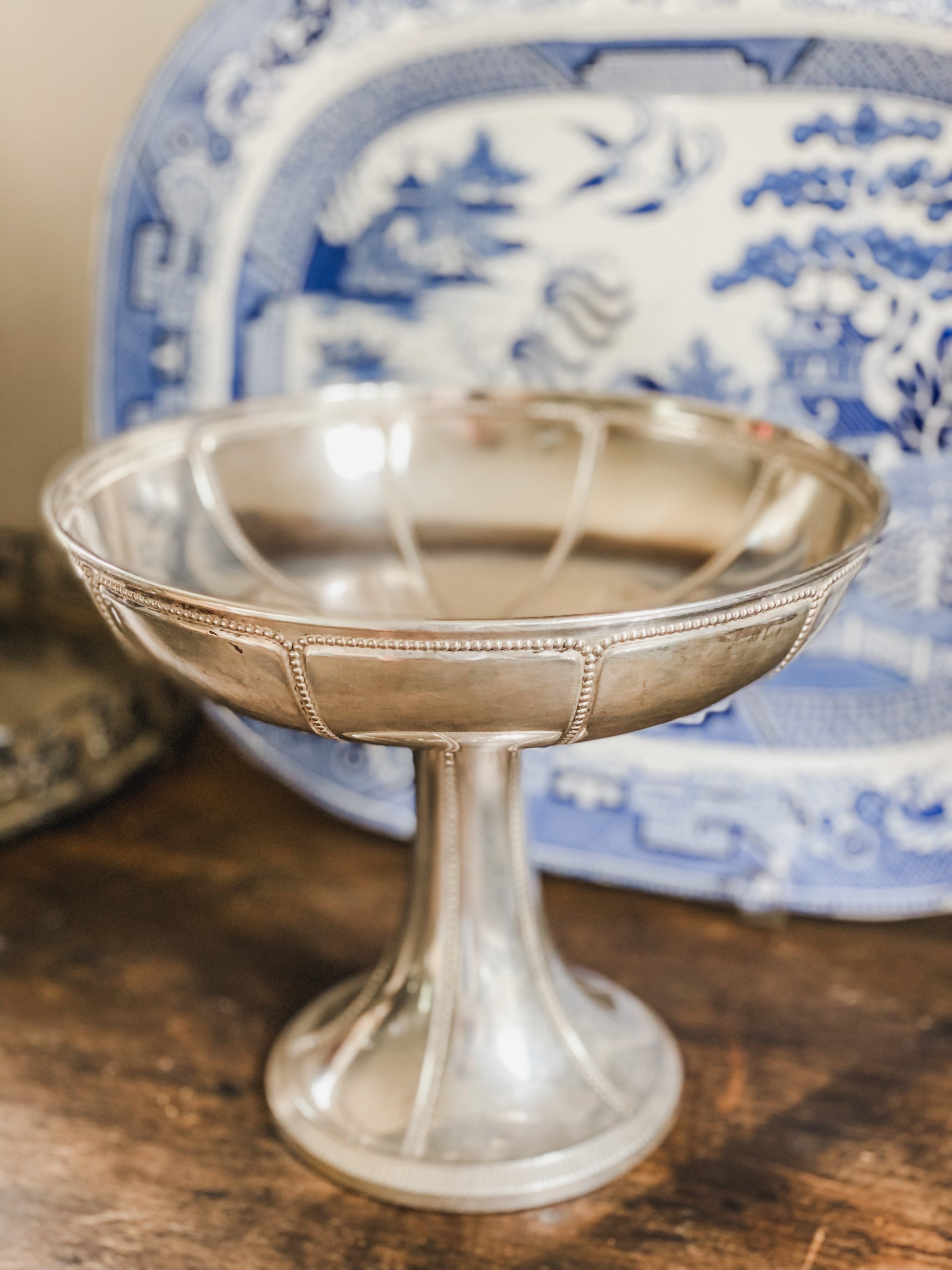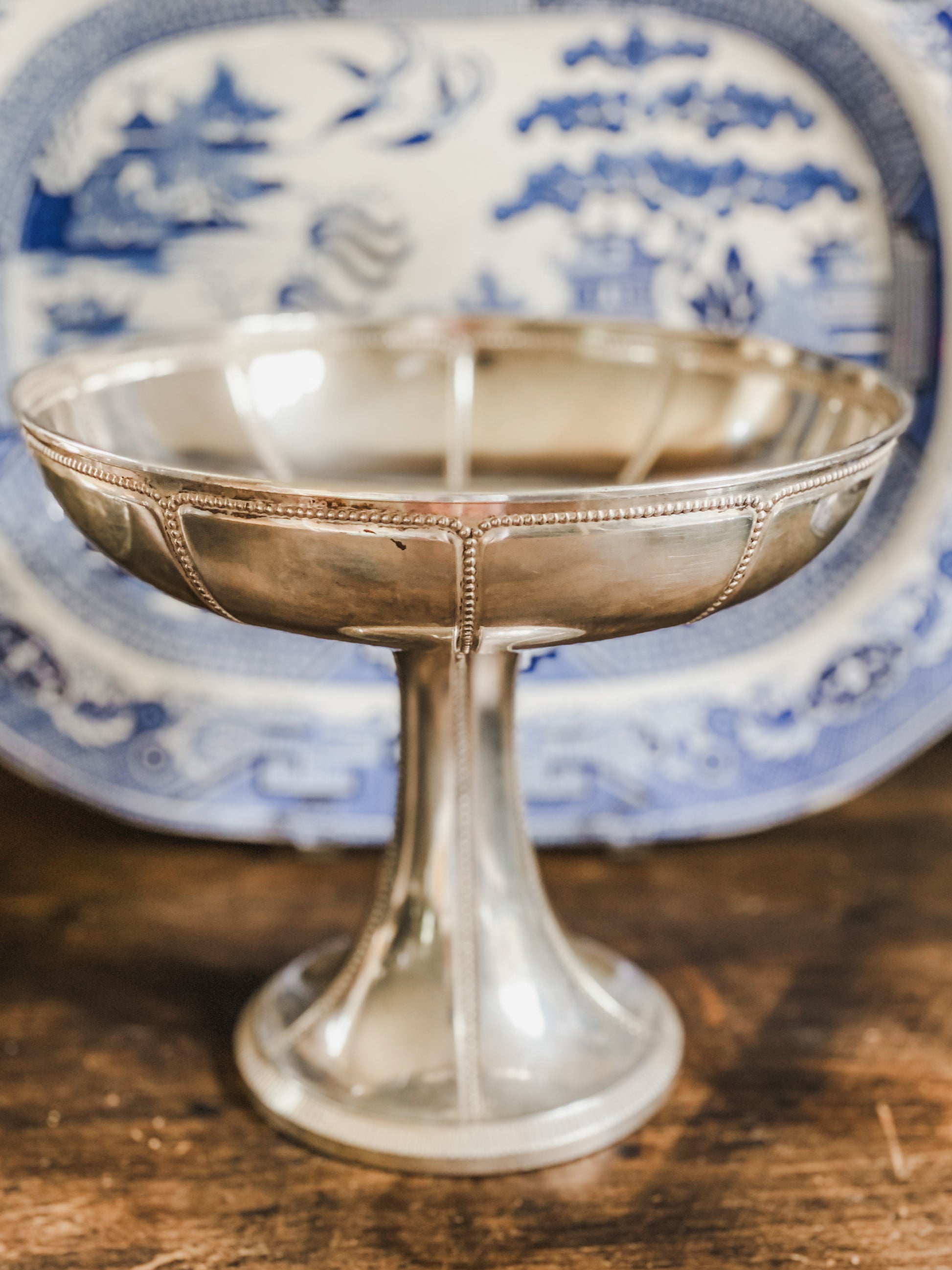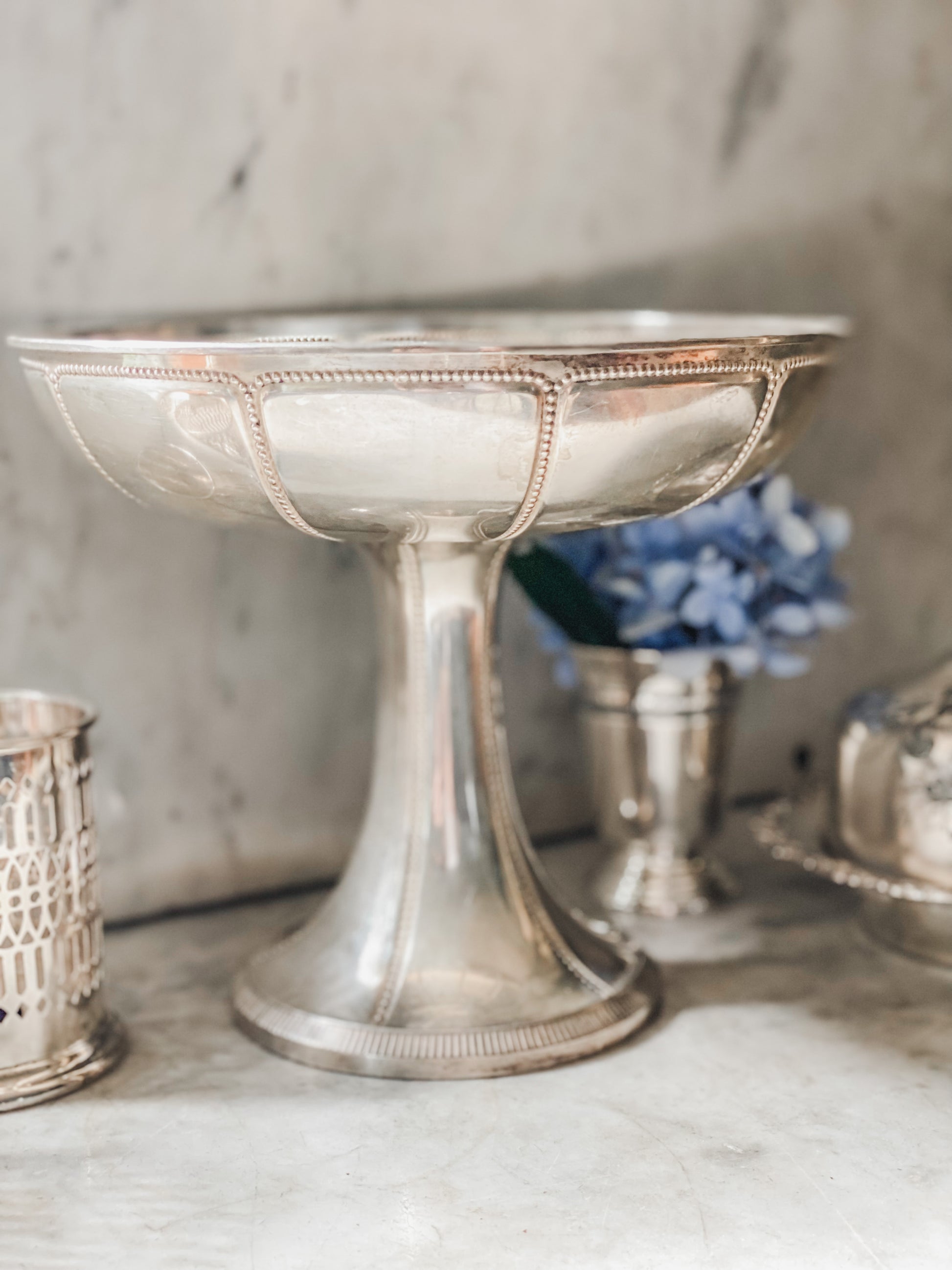 Beautiful pedestal centerpiece. Use this for flowers or a display. Note the beaded detail along the pedestal! 7.75" tall x 9" w