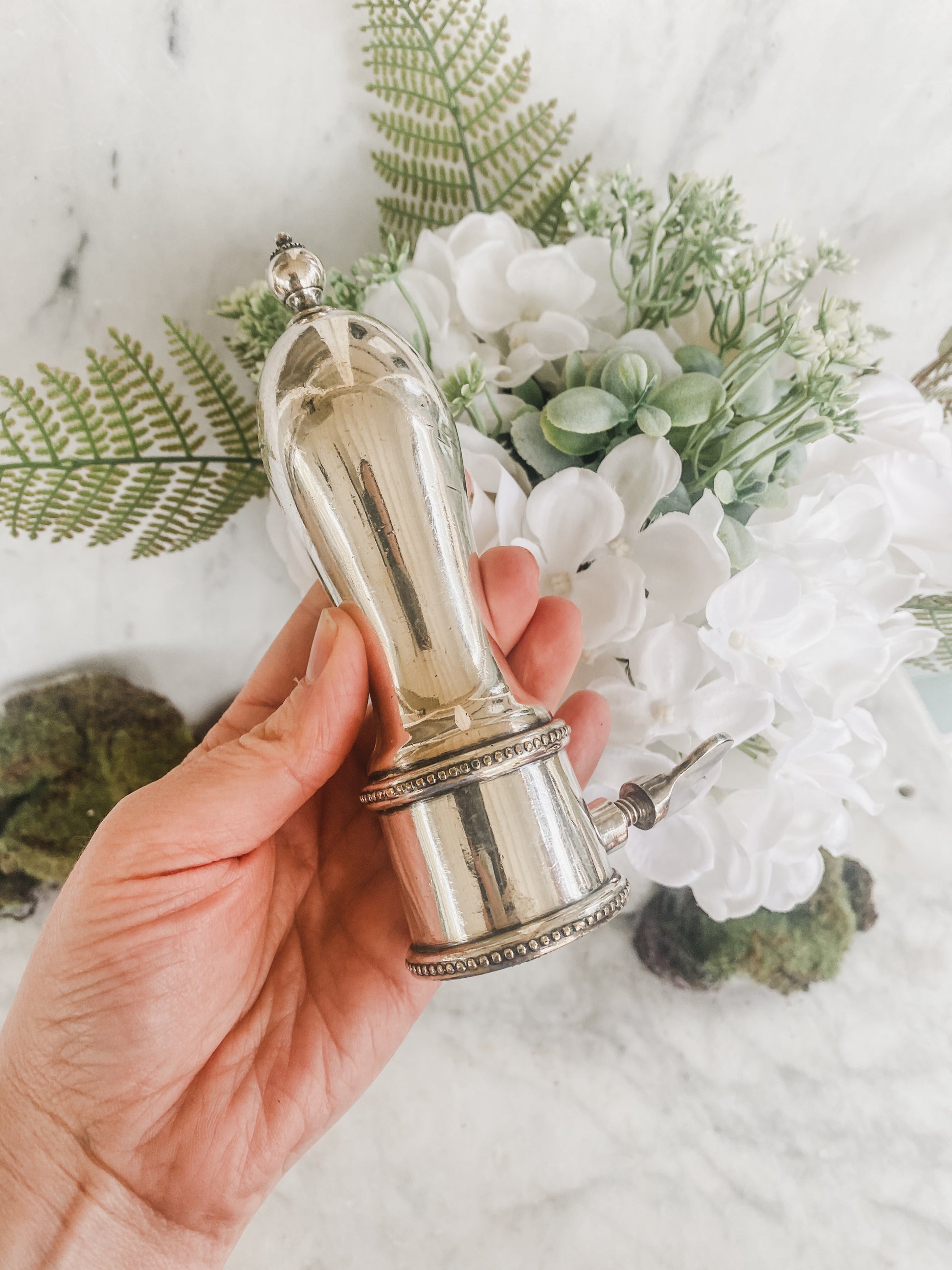 This is the second time I have ever had a ham bone holder! Originating in the 19th century, such holders became essential tools for carving and serving ham, particularly in European households where cured hams were a culinary staple. This holder securely grips the ham, allowing for precise, thin slices to be carved with ease, making it a centerpiece for festive occasions and family gatherings. Excellent antique condition. Silverplate 6" tall.