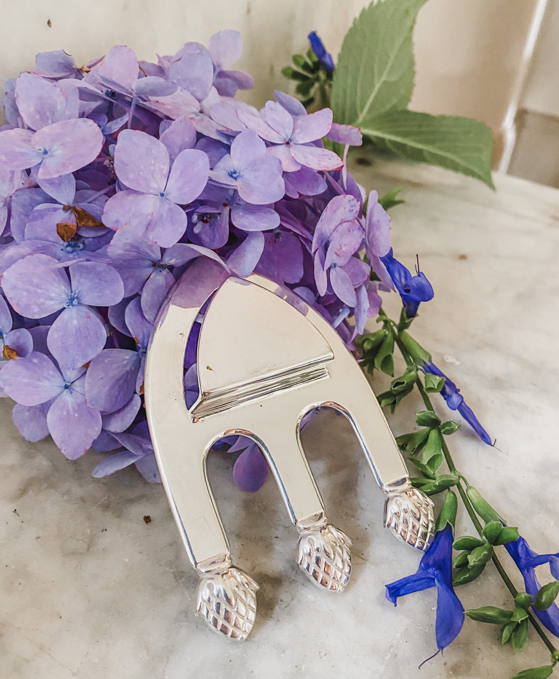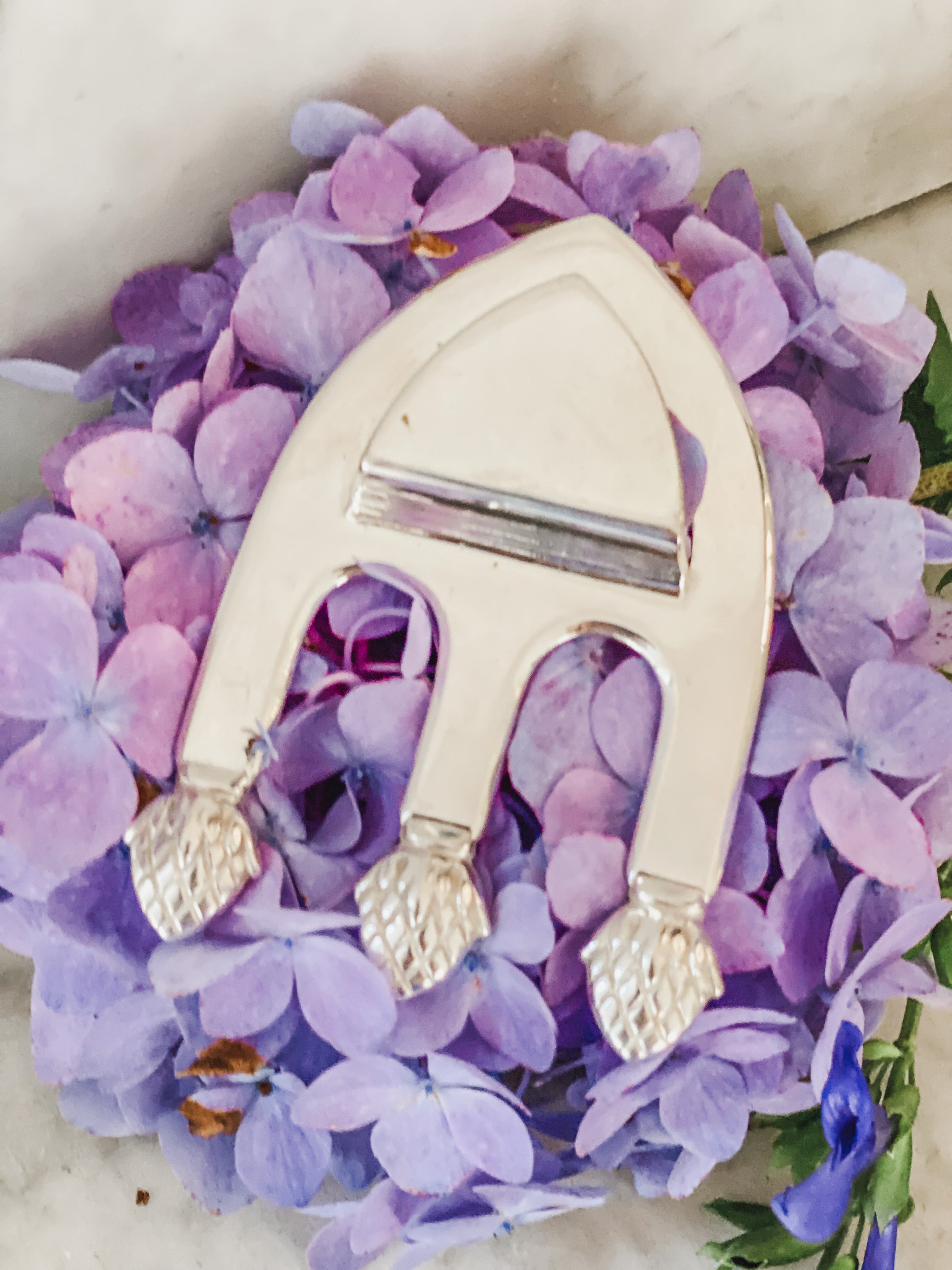 Who wouldn't find this little silverplate bookmark handy?! It is marked Sheffield Silver Company Italy. 4" x 2" This will ship free with any other purchase.