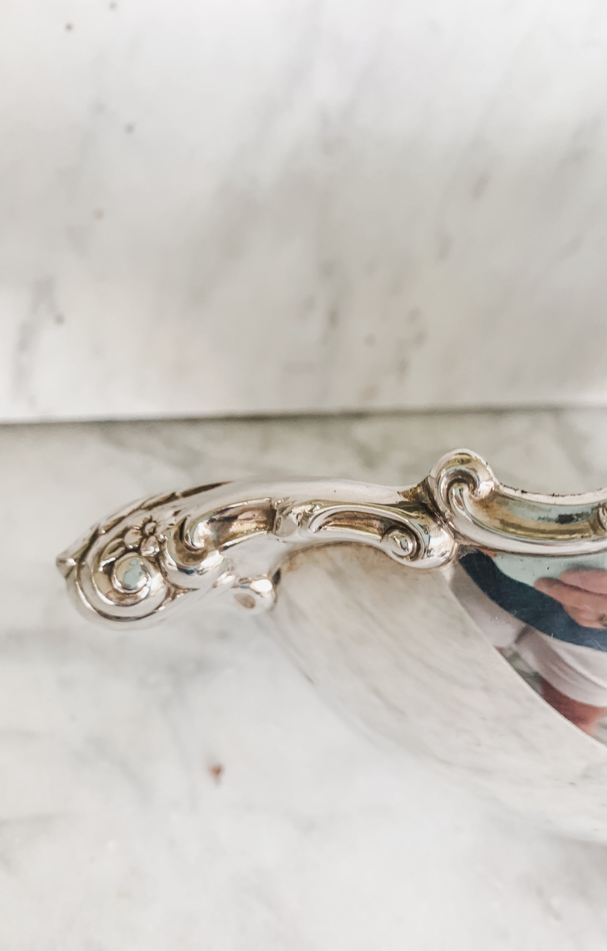 Wow this bowl is gorgeous!!!! You are really going to love this one. So shiny striking. I love the contrast of the smooth silver sides with the ornate detailing along the rim. A very special piece made by Lunt. 16 x 9 x 4.5" Some very light surface scratches to the silverplate inside the bowl otherwise excellent vintage condition.