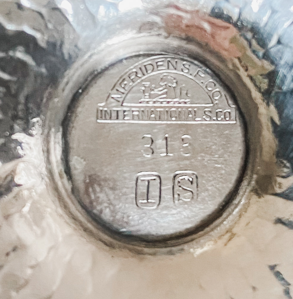 Fabulous 1910's-1920's hammered silverplate cocktail set by Meriden, crafted under the International Silver Company in the golden age of American entertaining. Around 1915-1925, Meriden created bar sets with the hammered finish done by hand in the old workshops before mass production changed the look of American silver. It is very uncommon to have a set that has stayed together this long!