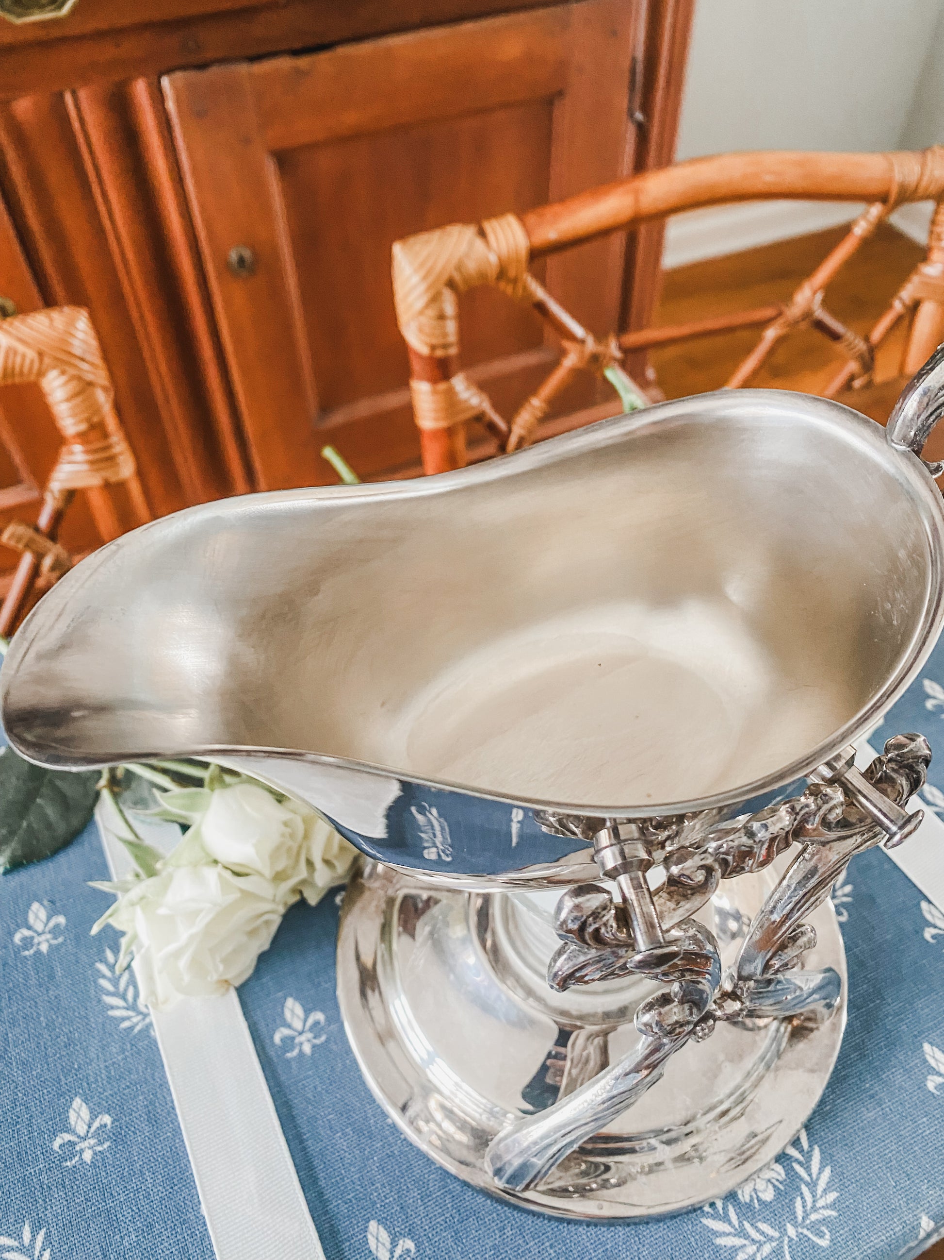 Lovely Vintage FB Rogers Tilting Gravy Boat with Warming Stand – Functional & Beautiful