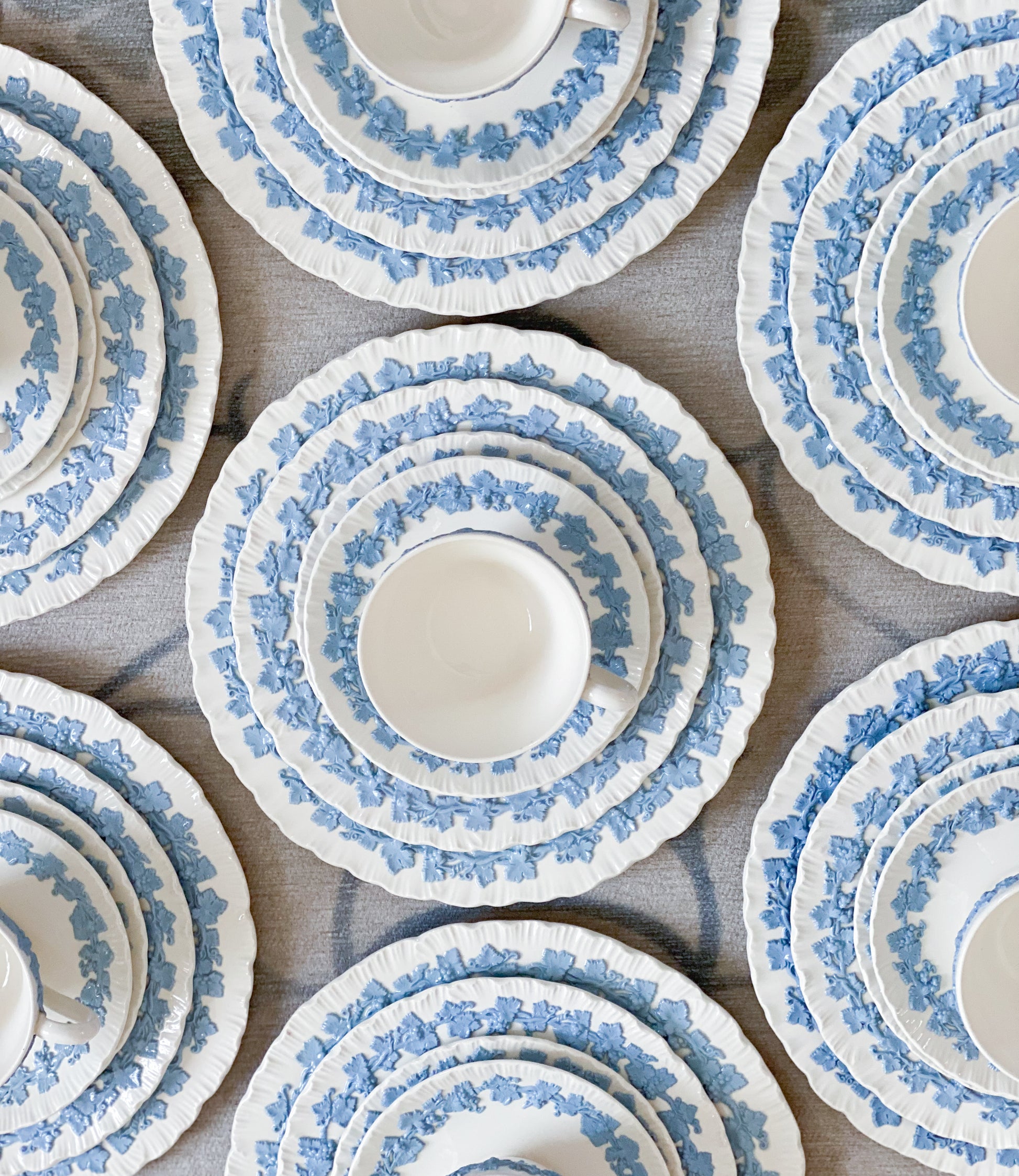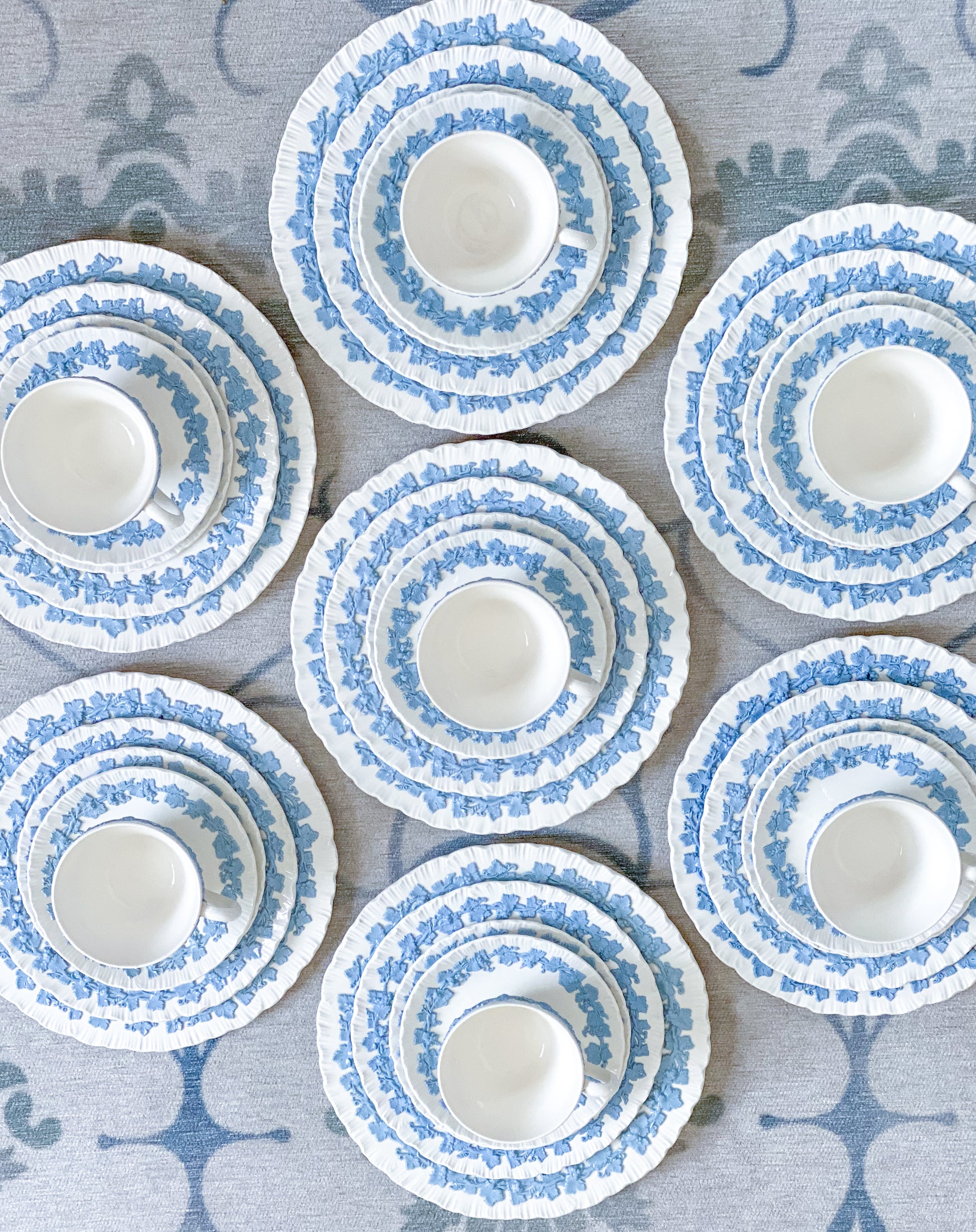 These dishes are an absolute dream for any blue-and-white enthusiast—a quintessential addition to your collection. The Wedgwood lavender-on-cream pattern showcases one of the prettiest blue-and-white color combinations, made even more captivating by the exquisite shell edge detailing.