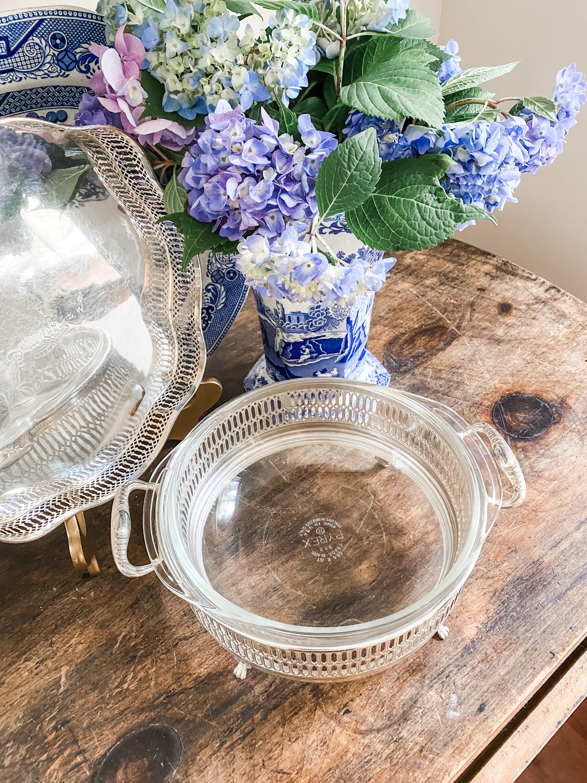 Glass Baking Dish in a Reticulated Silver Holder