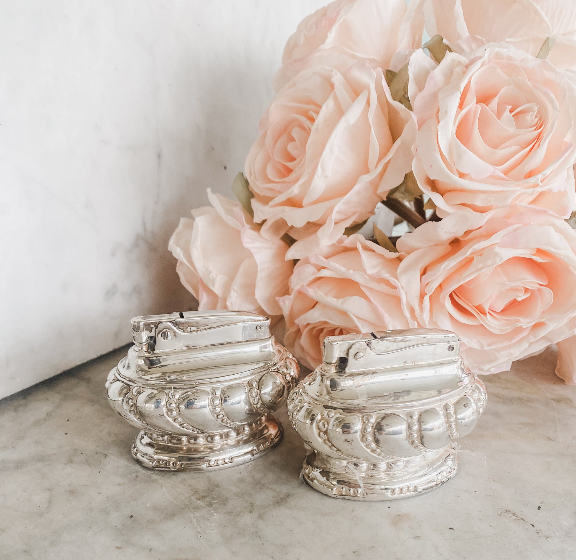 Pair of Ronson Crown Silver Plate Table Lighters, Art Deco Design, Mid-20th Century