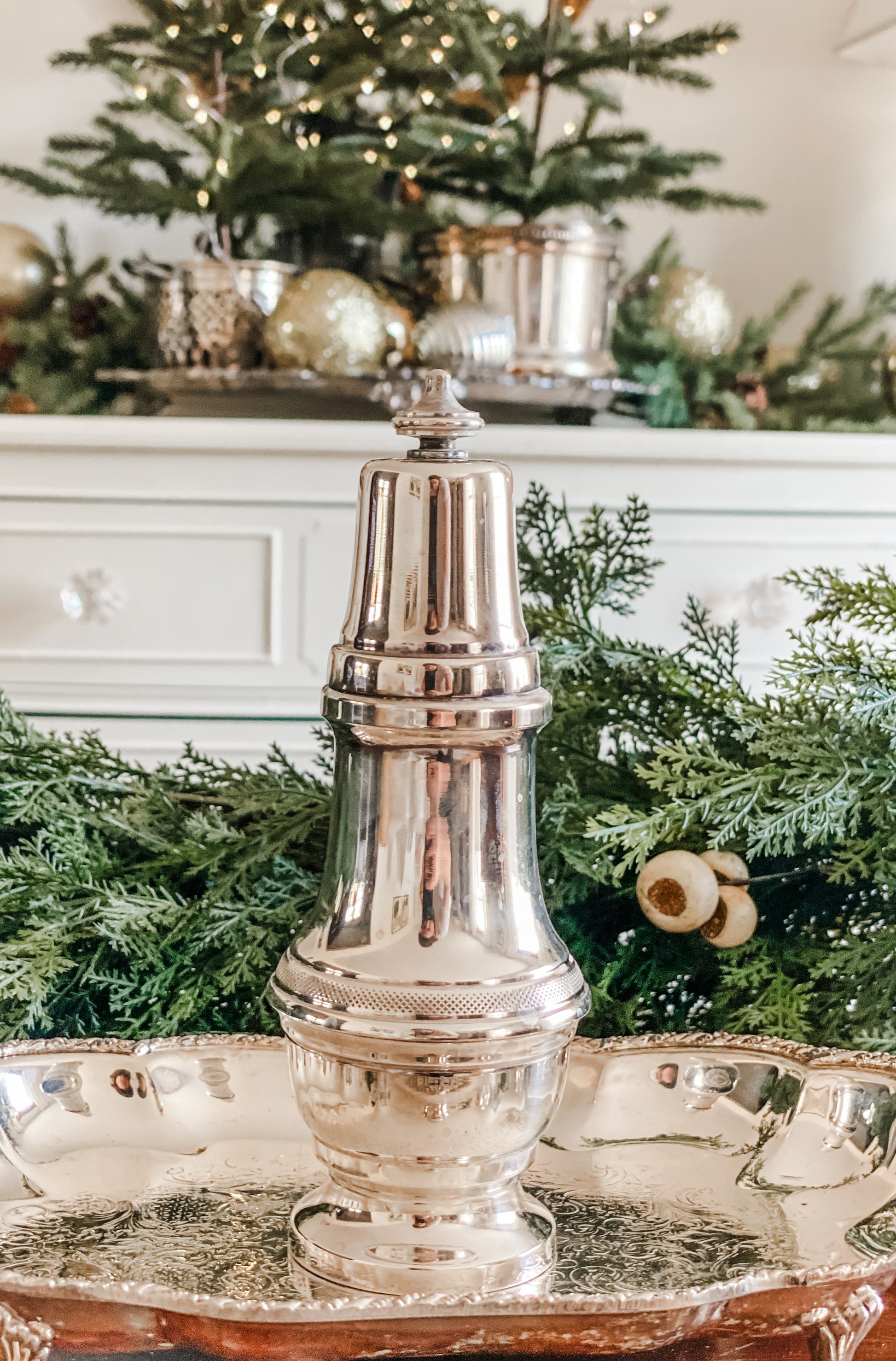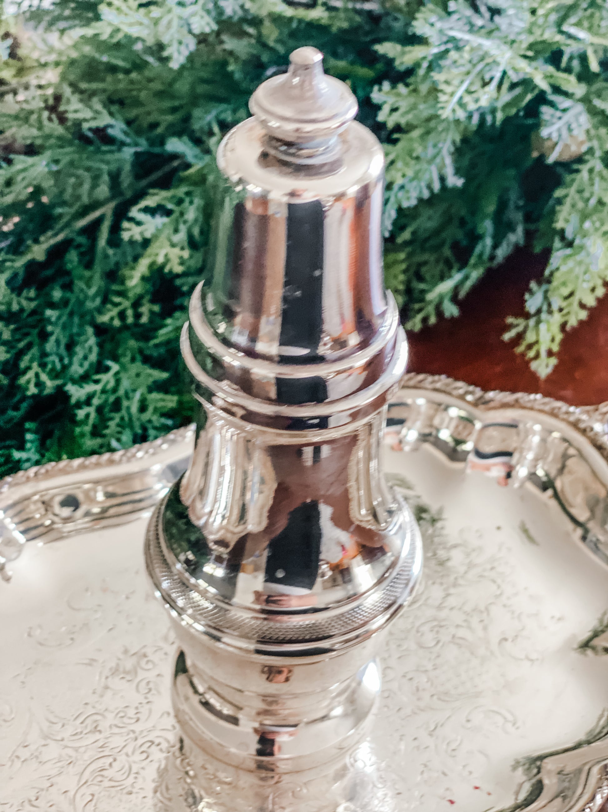 Made by Peugot, known for making the finest pepper mills in the world, you will recognize the name of the brand which also makes the car, pronounced "Pew-jo," created by the same family in 1905. These brands of pepper mills, crush the pepper corns like no other, crushing the pepper in half before grinding it. These come with a lifetime guarantee, and are known for being impossible to wear out. Here we have a beautifully designed pepper mill with silverplating detail in excellent condition. The finial on top screws off and the lid is able to be taken off, allowing you to refill it. How beautiful to keep on your table or counter for all of your cooking needs. 7.5" tall.