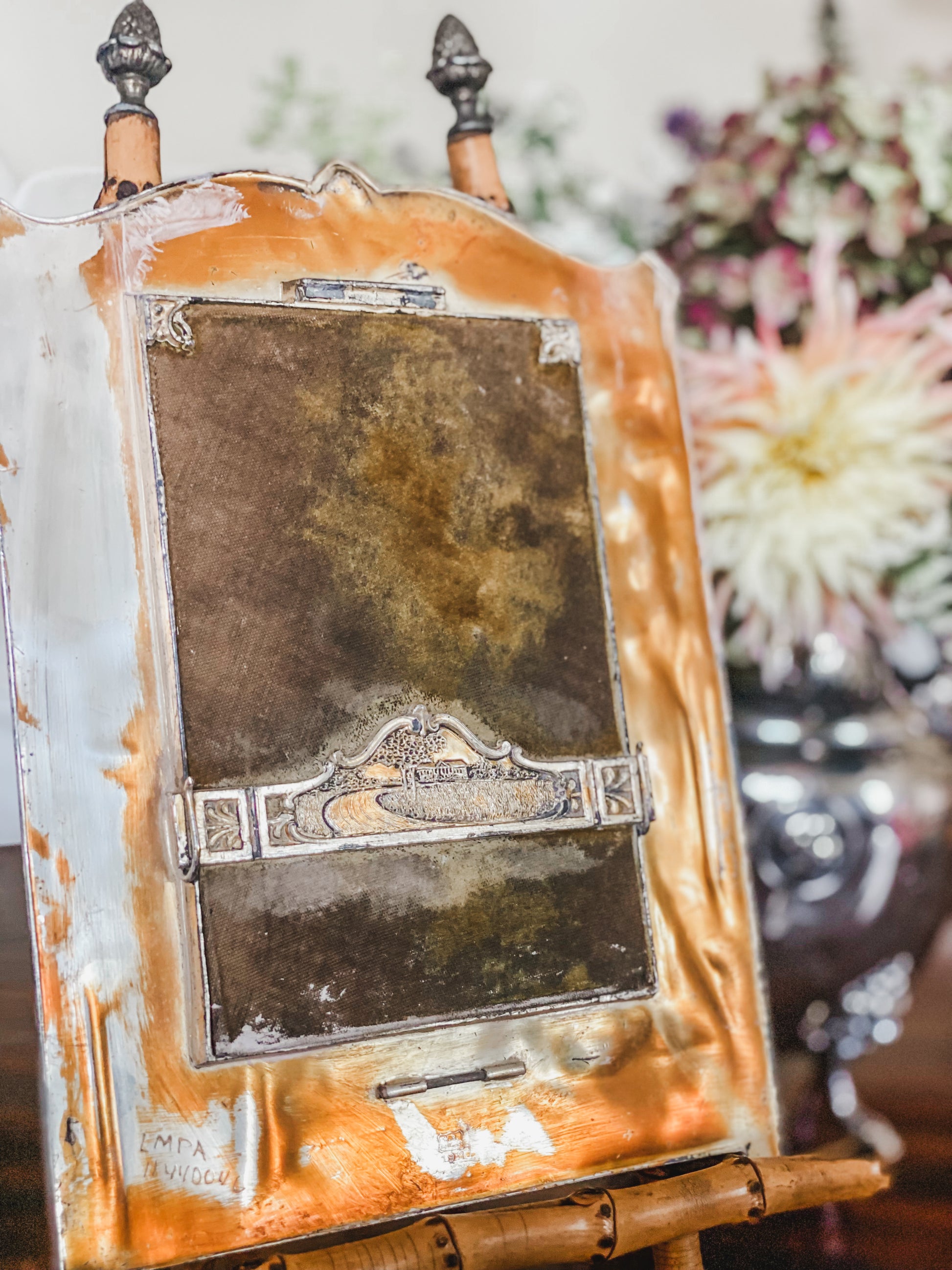 Here is something I bet you don't have! This exquisite silver plate picture frame, crafted by the renowned Weidlich Brothers Manufacturing Company, showcases the fine artistry that made this Connecticut-based company a hallmark of early 20th-century American design. It retains its original glass and backing, though the kickstand appears to be missing. Look at the details on this! Even the bar on the back features a beautiful design!
