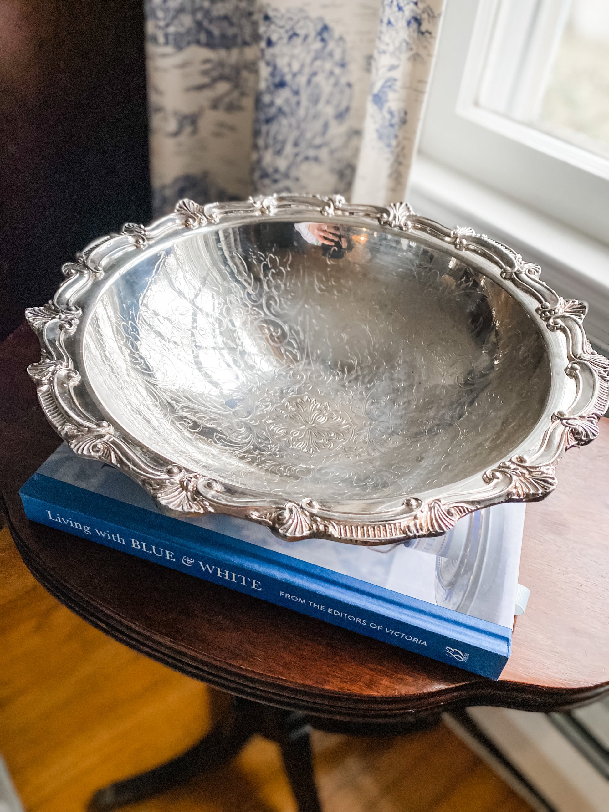 Silver on Copper is highly desirable due to its high-quality construction and exquisite design, making this centerpiece bowl a true treasure. Whether you're hosting a dinner party, showcasing your favorite flowers, blue and white carpet balls, or simply adding to your collection, this bowl is sure to impress.