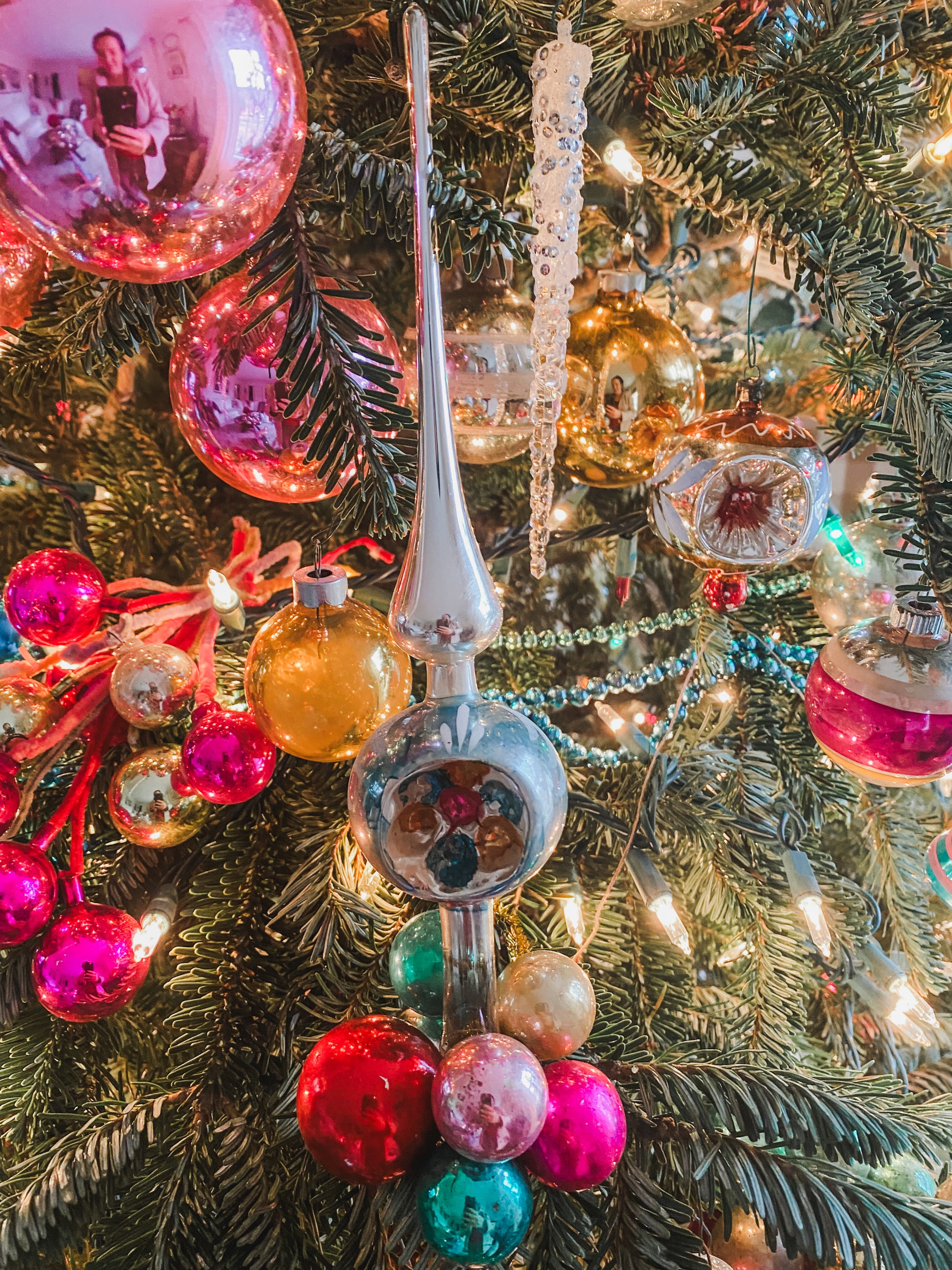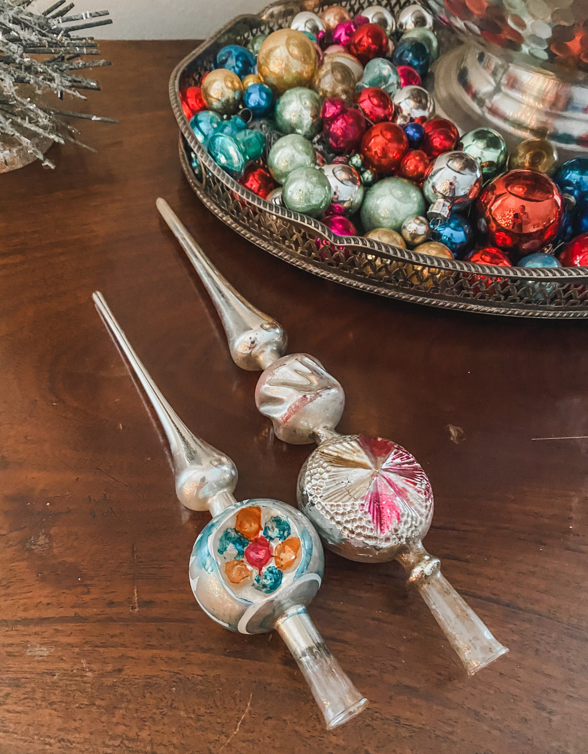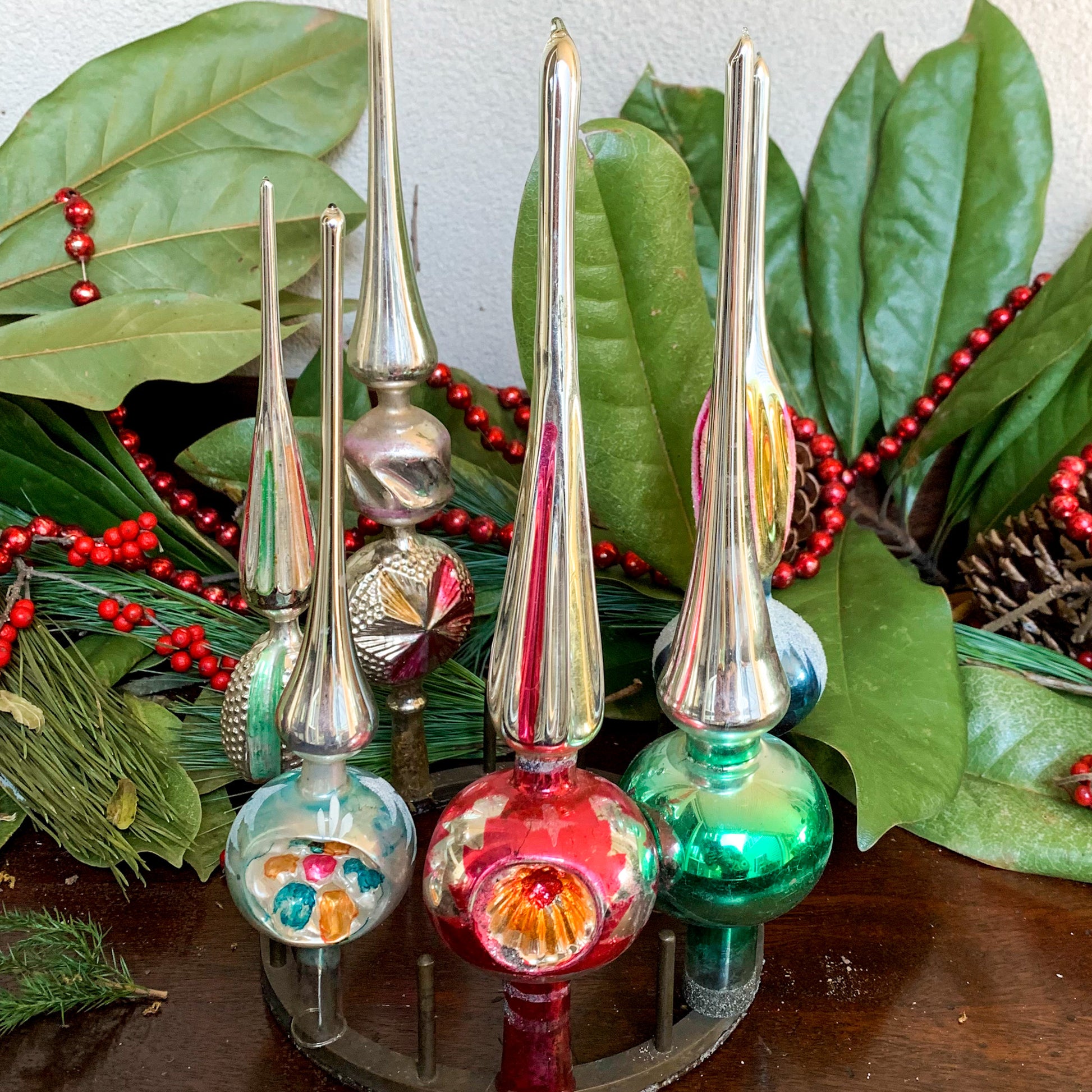 Antique tree toppers are very rare hand blown works of art! Unique and distinctive they can also be displayed as shown. This topper that is for sale is the blue one on the left in the group photos. It stands 9.5" tall.