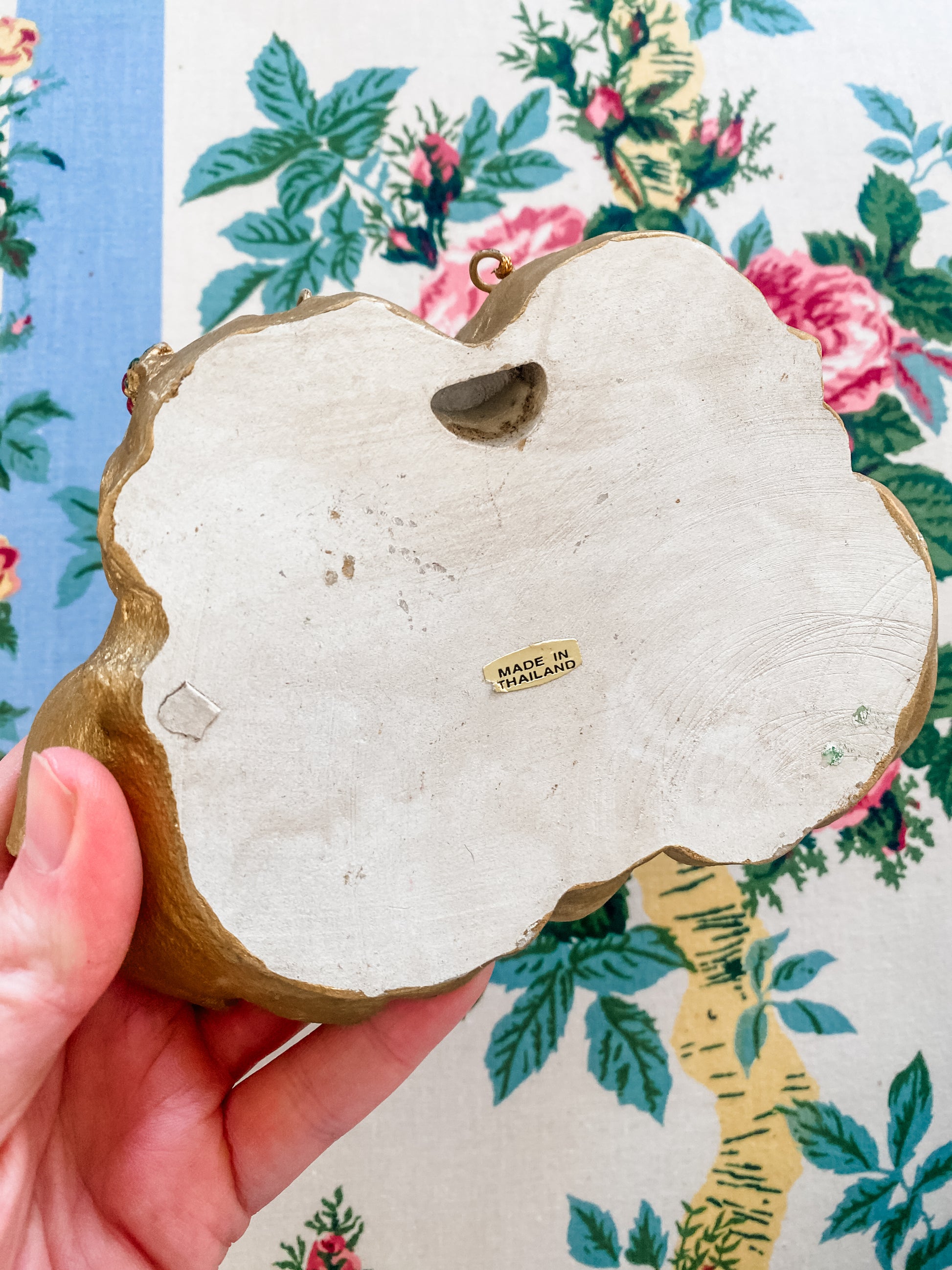 Vintage double putti heads with wings, hand-painted in gold with small holly berry details. Measures approximately 6.5 inches long by 4.5 inches tall.